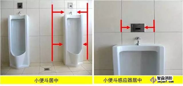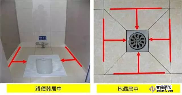 1、衛(wèi)生器具安裝:根據(jù)衛(wèi)生器具規(guī)格、間距及排水管位置進行排布,使器具與排水管、配件與墻面磚騎縫或居中。水嘴出水口宜于臺盆落水口上下對正。排水管應(yīng)垂直,成排存水彎應(yīng)朝向一致,存水彎與排水管間隙用瀝青麻絲填塞密實后加不銹鋼裝飾圈,地漏應(yīng)避開人上廁所時常站的地方,且距板塊中間對稱設(shè)置。