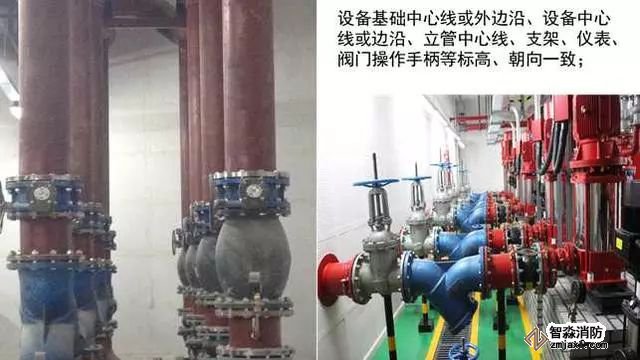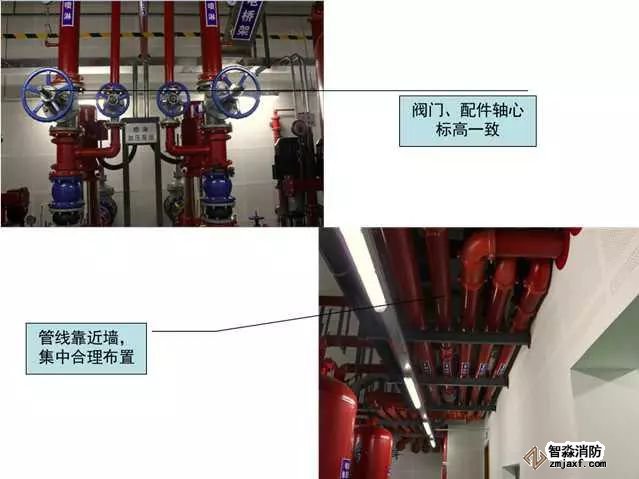 質(zhì)量控制要點:成排成線,部件標高、朝向一致,維護方便,各專業(yè)必須依照綜合管線布置圖施工(距離管線彎頭500mm范圍內(nèi)應(yīng)設(shè)置支吊架)。