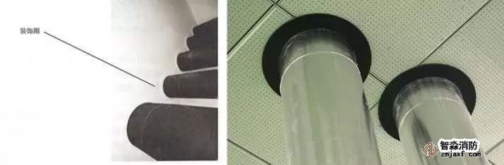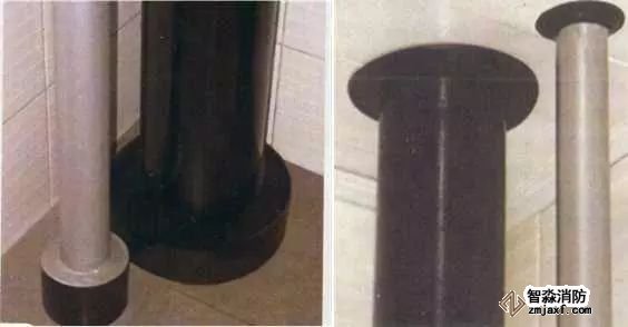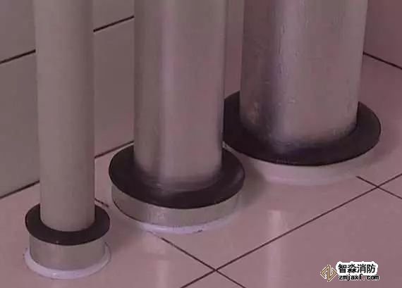 管道穿樓板處根部應(yīng)設(shè)套管或護墩,套管與管道之間應(yīng)做防火封堵,頂部齊平光滑,設(shè)裝飾圈。