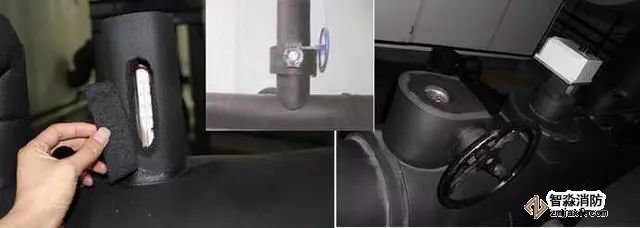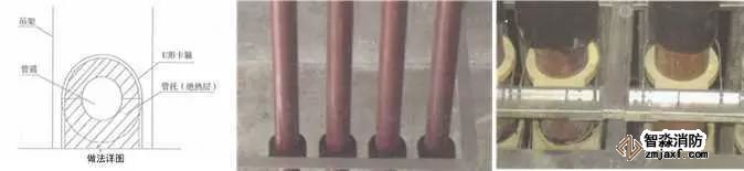 質(zhì)量控制要點:橡塑管(板)與管托粘接、卡環(huán)處預(yù)留寬度。采用木托時,防腐處理應(yīng)到位。管托厚度不得小于絕熱層厚度,接點緊密,表面平整,不得有冷熱橋現(xiàn)象。