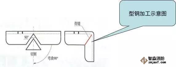 根據(jù)管道的數(shù)量、管徑、走向、空間布局選用合適的支架形式;下料應(yīng)采用切割機,用臺鉆鉆螺栓孔(嚴禁采用氣割吹孔),孔徑為螺栓直徑+2mm;型鋼切割面應(yīng)打磨光滑,端部倒圓弧角,倒角半徑為型鋼端面邊長的1/3~1/2,支架拐角處應(yīng)采用45°拼接,拼接縫采用焊接,焊縫應(yīng)飽滿、打磨平滑;支架應(yīng)先刷防銹漆兩道,再刷面漆一道,埋地支架埋入部分及地面以上50mm(±1mm)內(nèi)刷防銹漆兩道后再瀝青防腐面漆兩道。