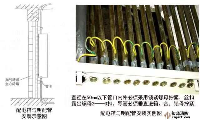 質(zhì)量控制要點:管口光滑,開孔尺寸與線管一致,固定牢固,接地可靠。