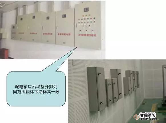 控制質(zhì)量要求:安裝牢固,配電柜正面?zhèn)让娴拇怪倍炔淮笥?mm每2m;成排配電柜前面平整度不大于2mm,頂高高差不大于2mm,相鄰配電柜連接縫隙不大于2mm。配電柜門內(nèi)應(yīng)粘貼配電系統(tǒng)圖。