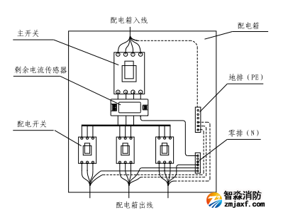 圖 4 傳感器安裝在配電箱主開關(guān)出線處的接法,也可裝在上方的入線處