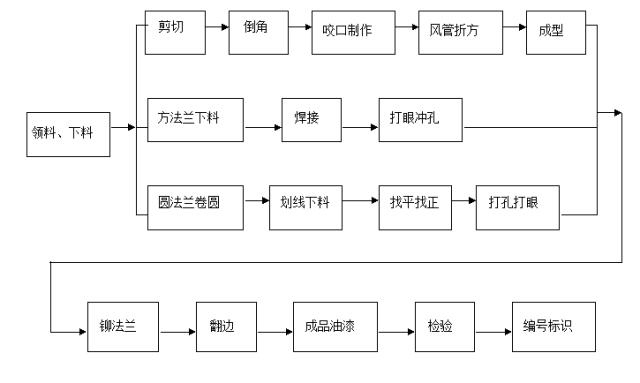 ① 風(fēng)管法蘭平整,焊縫飽滿,無(wú)缺口。‚