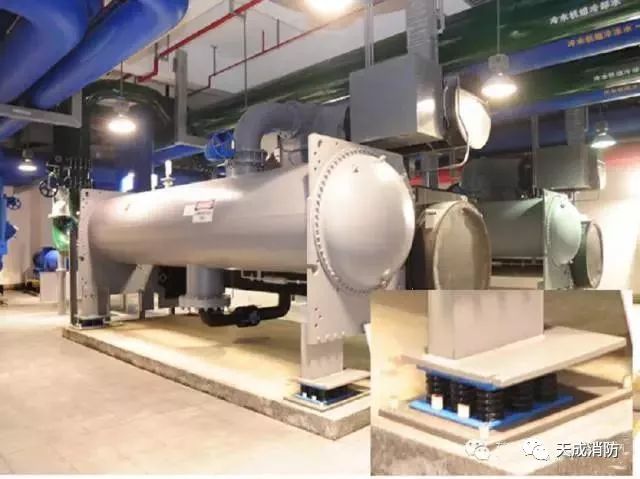 設(shè)備基礎(chǔ)必須經(jīng)過(guò)交接驗(yàn)收,其大小、平整度應(yīng)滿足設(shè)備安裝要求。風(fēng)機(jī)與基礎(chǔ)接觸處應(yīng)有橡膠減振墊或彈簧減振器等減振措施,且減振電或彈簧應(yīng)考慮動(dòng)荷載。