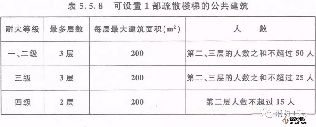 5、除兒童活動場所以及托兒所、幼兒園的兒童用房外,符合《建筑設(shè)計(jì)防火規(guī)范》表 5.5.8 規(guī)定的公共建筑,可以設(shè)置 1 個(gè)安全出口。(5.5.8