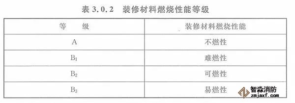 3.0.2 裝修材料按其燃燒性能應(yīng)劃分為四級(jí)。