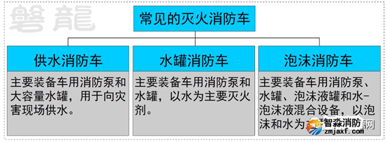 滅火消防車主要裝備滅火裝置,用于撲滅各類火災,主要分為14類:水罐消防車、供水消防車、泡沫消防車、干粉消防車、干粉泡沫聯用消防車、干粉水聯用消防車、氣體消防車、壓縮空氣泡沫消防車、泵浦消防車、高倍泡沫消防車、水霧消防車、高壓射流消防車、機場消防車、渦噴消防車等。其中,常見的主要有水罐消防車、供水消防車、泡沫消防車等。