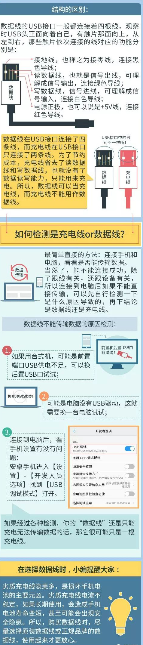 小編覺得,你可能買的是充電線而不是數據線,那么有的小伙伴就疑惑了,充電線和數據線難道不是一樣的?