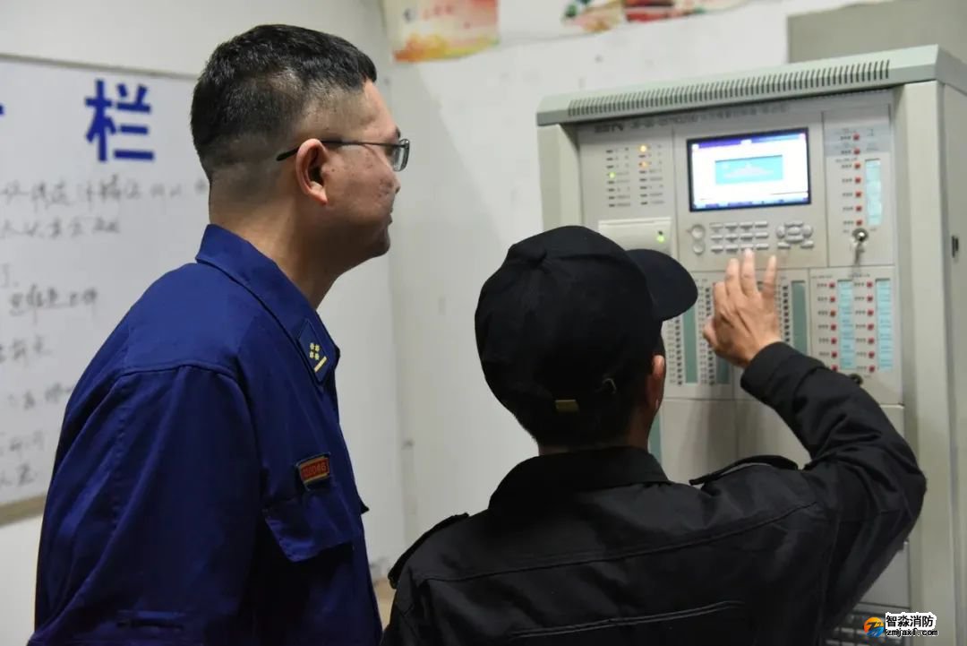 消防值守人員演示著火時(shí)消防控制室消防聯(lián)動(dòng)控制器如何報(bào)警。