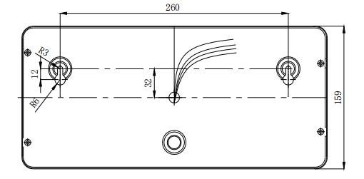 噴灑燈安裝方式采用壁掛方式。先安裝兩只M6×60膨脹螺栓,安裝孔距為260mm(見(jiàn)圖5-15),再將噴灑燈接好線,調(diào)節(jié)好膨脹螺栓的高度,將噴灑燈緊掛在墻上。也可將外殼上蓋打開(kāi),把膨脹螺栓的螺母擰緊。