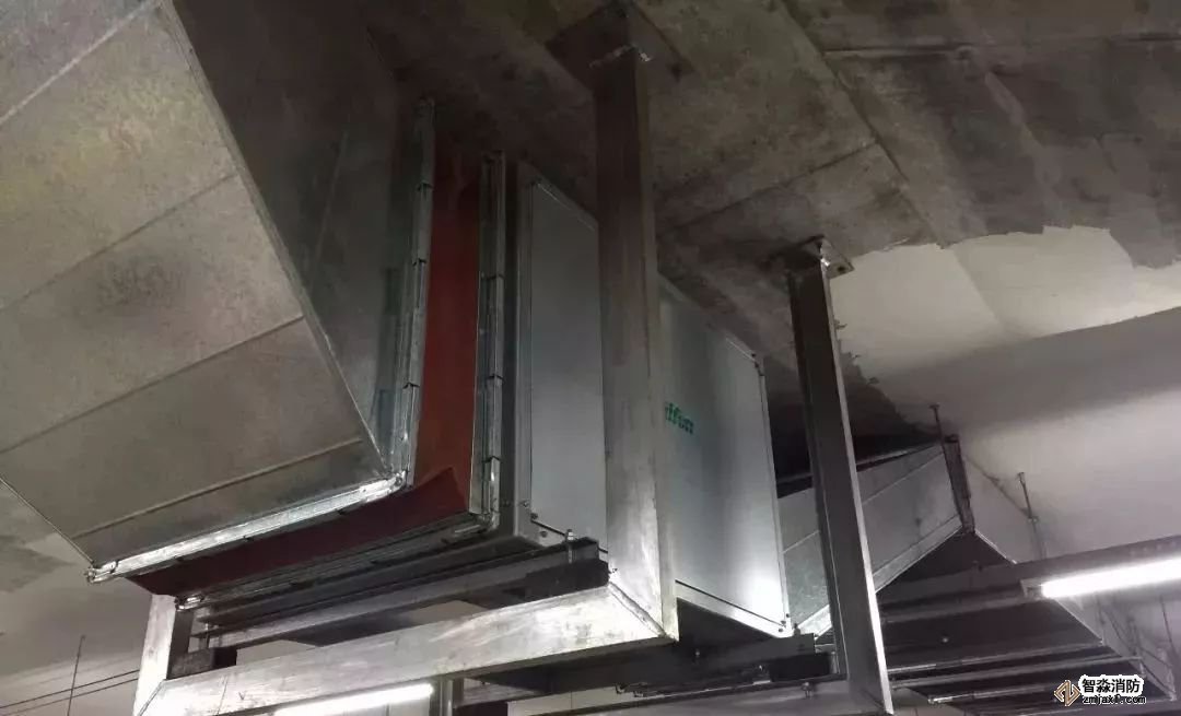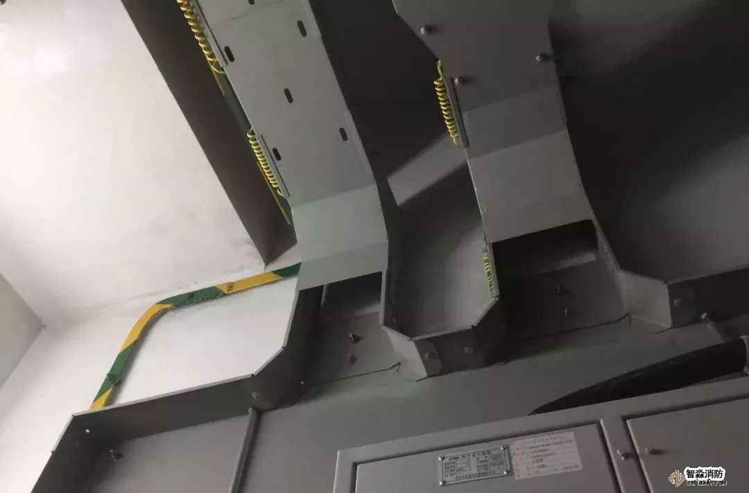 排煙管道安裝,法蘭采用倒角法蘭,美觀實(shí)用,標(biāo)識(shí)清楚。