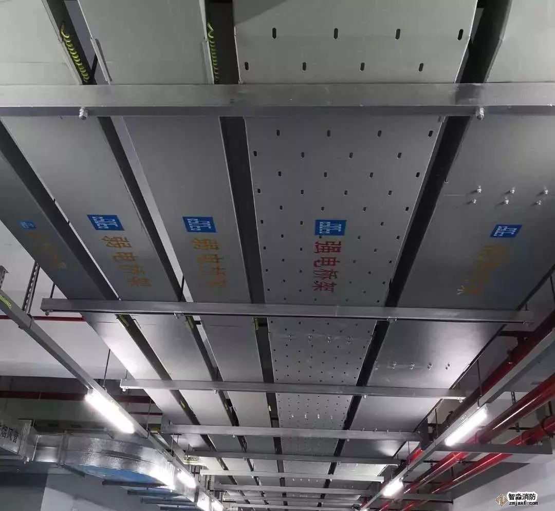 消防噴淋管道間距一致,標(biāo)識(shí)清楚、成排成線。