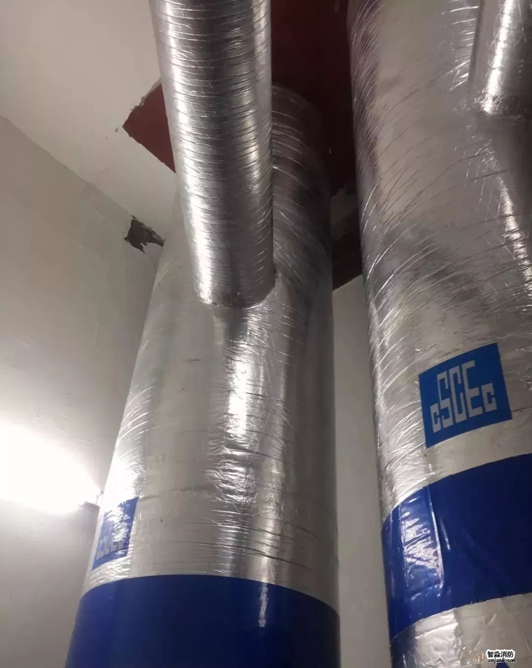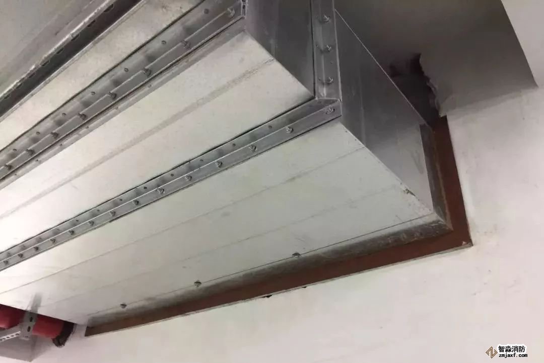 風(fēng)管穿墻,防火泥封堵到位,界面清楚。