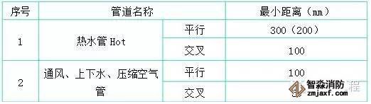 4.暗配電線(xiàn)管路與其它管道最小距離,如下表所示: