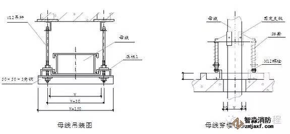 6.封閉插接母線(xiàn)吊裝及穿樓板安裝圖如下: