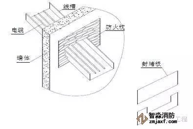 7.封閉插接母線(xiàn)在穿過(guò)墻及防火樓板時(shí),在母線(xiàn)周?chē)畛浞阑鸲铝?,具體做法見(jiàn)上圖。