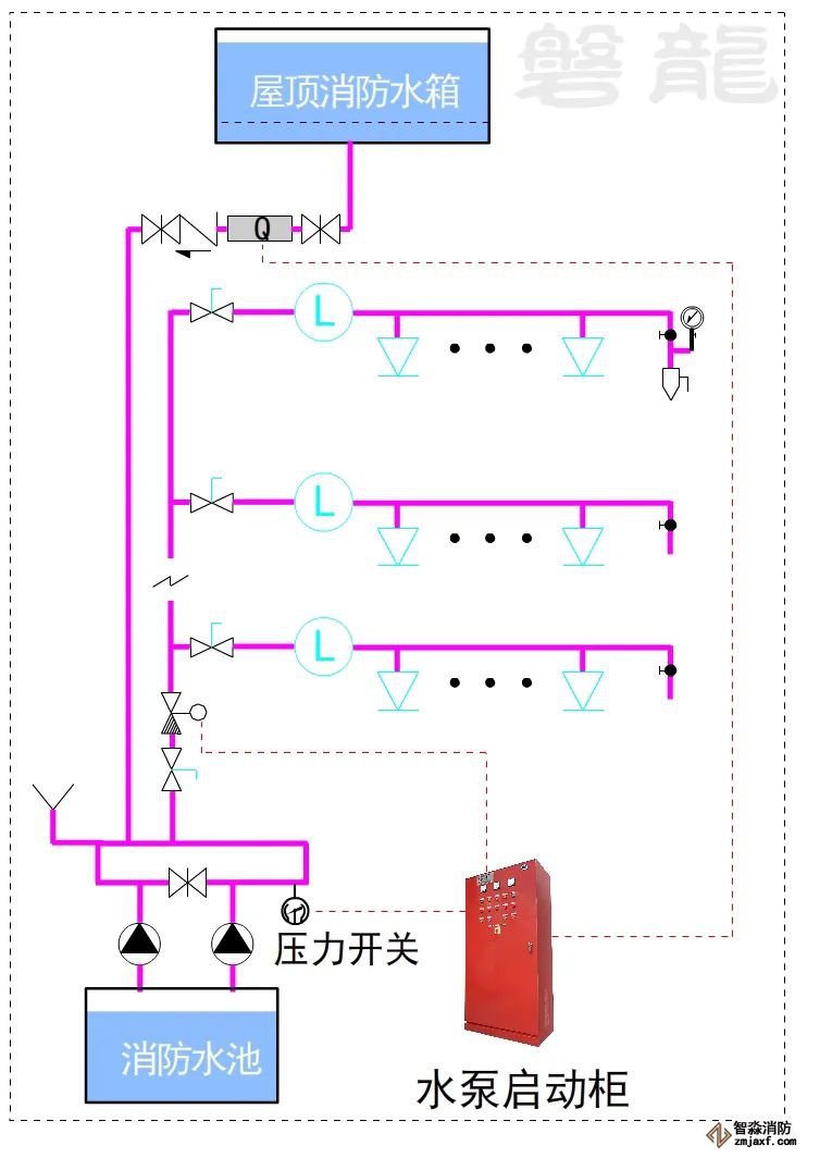 2、高位消防水箱出水管上應(yīng)設(shè)置流量開(kāi)關(guān)。
