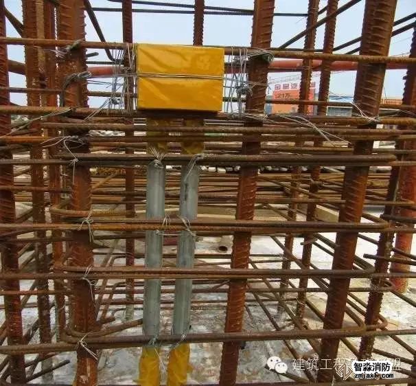 淘汰傳統(tǒng)的預(yù)留法如木盒、鐵皮盒、塑料套管,避免跑模、變形等弊端,采用可提式鋼管盒預(yù)留法,材料利用廢舊鋼管,制作時,套管高度為250mm,套管管徑比圖紙設(shè)計的管徑大兩個等級,在離預(yù)留盒上口80mm處焊接一個Φ6圓鋼煨成的提手,以備混凝土達(dá)到一定強度后便于拔出,同時在預(yù)留盒的底口用鋼板封堵好。 蘇州智淼消防工程安裝公司
