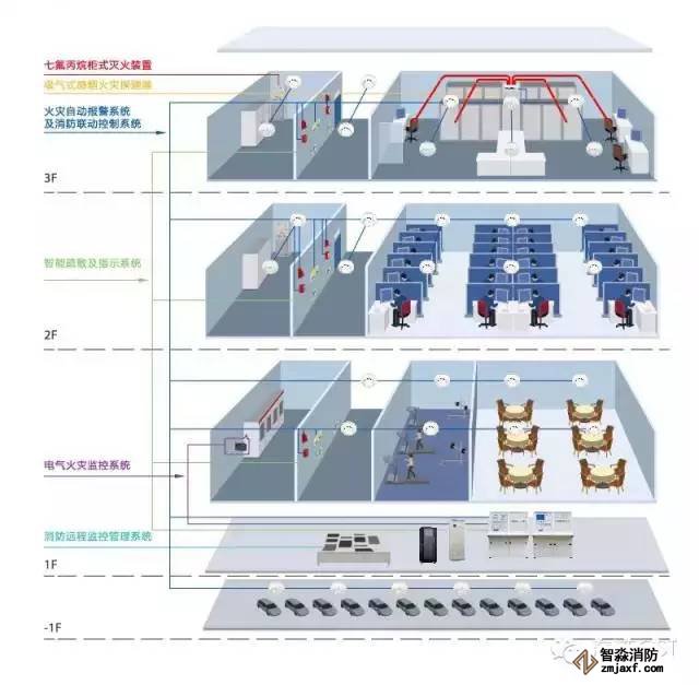(2)顯示系統(tǒng)的驅(qū)動裝置的正常工作狀態(tài)和動作狀態(tài),防護區(qū)域中的防火門窗、防火閥、通風空調(diào)等設備的正常工作狀態(tài)和動作狀態(tài);