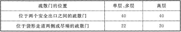 表3 直通疏散走道的房間疏散門(mén)至最近安全出口的最大直線距離(m)