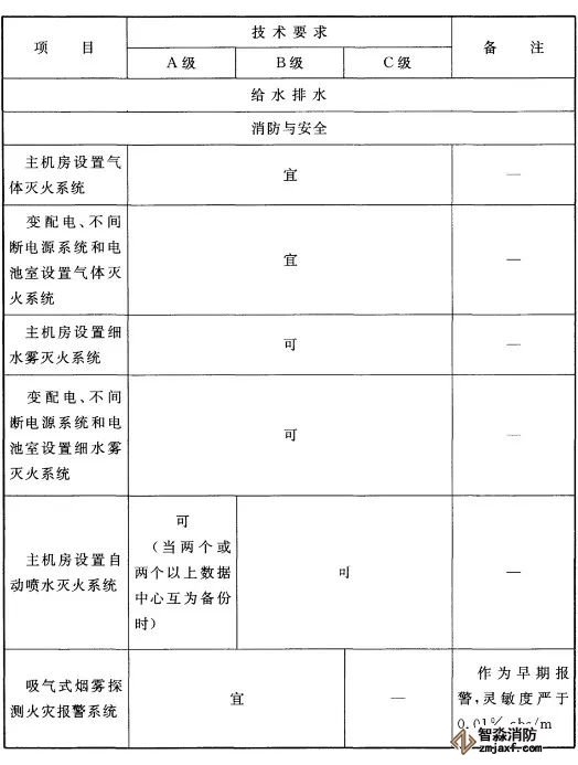 2、A級(jí)數(shù)據(jù)中心的主機(jī)房宜設(shè)置氣體滅火系統(tǒng),也可設(shè)置細(xì)水霧滅火系統(tǒng)。當(dāng)A級(jí)數(shù)據(jù)中心內(nèi)的電子信息系統(tǒng)在其他數(shù)據(jù)中心內(nèi)安裝有承擔(dān)相同功能的備份系統(tǒng)時(shí),也可設(shè)置自動(dòng)噴水滅火系統(tǒng)。