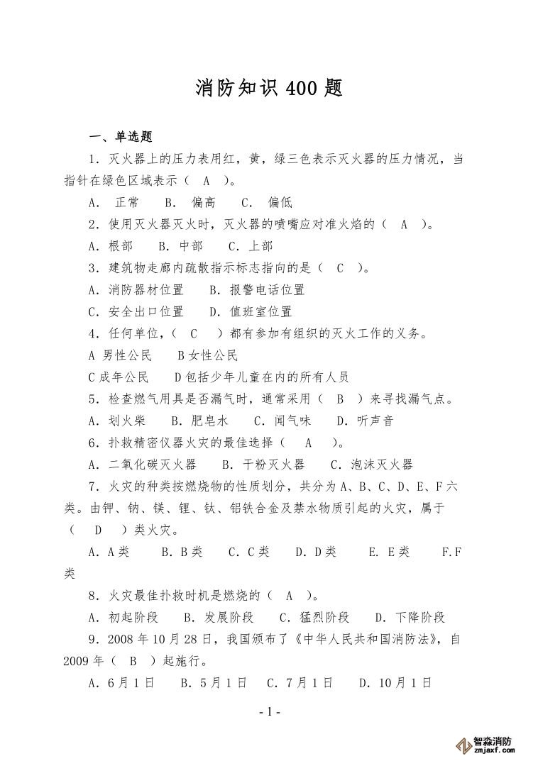 消防知識400題,用來考試還是競賽?由你定(值得收藏?。?/font>