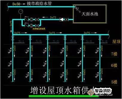 4、增設(shè)地面水箱和天面水箱的供水說明: