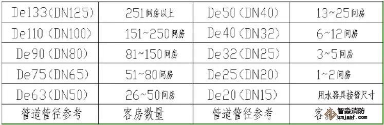 4.冷水管材質(zhì)采用PPR給水管?!?100間房計(jì)算】主水管的管徑在 De90左右以上,干管的管徑:De50-75,支管的管徑:De25-50 。客房衛(wèi)生間給水管徑要求:不小于PPR-De20的管徑。