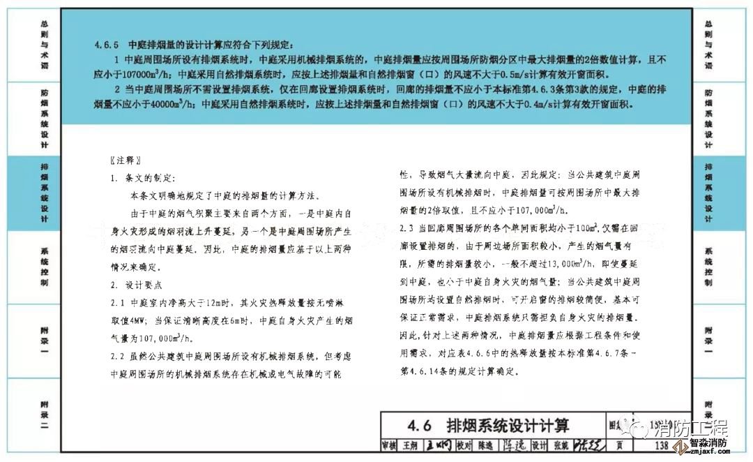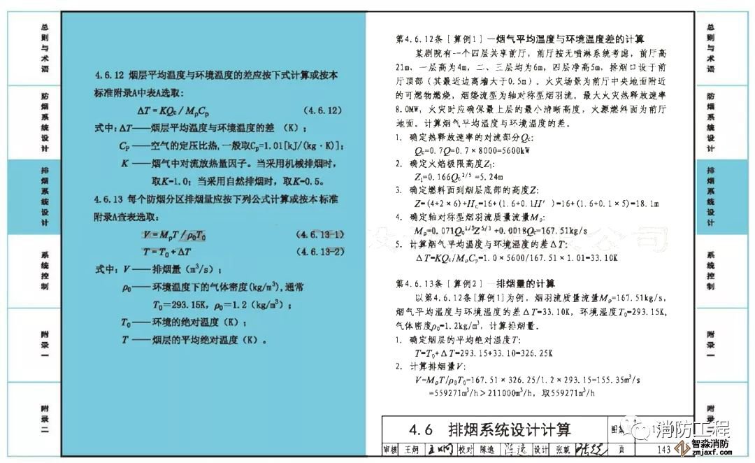 8、第143頁“第4.6.12條[算例1]”:一是字體小了;二是結(jié)合《自動噴水滅火系統(tǒng)設(shè)計規(guī)范》GB50084-2017,將前廳排煙計算從“有噴淋”改為“無噴淋”。