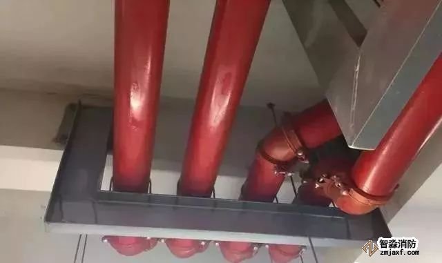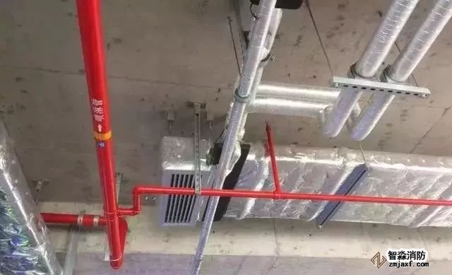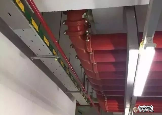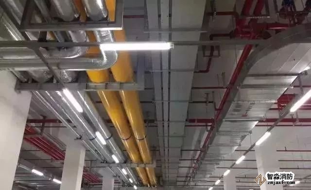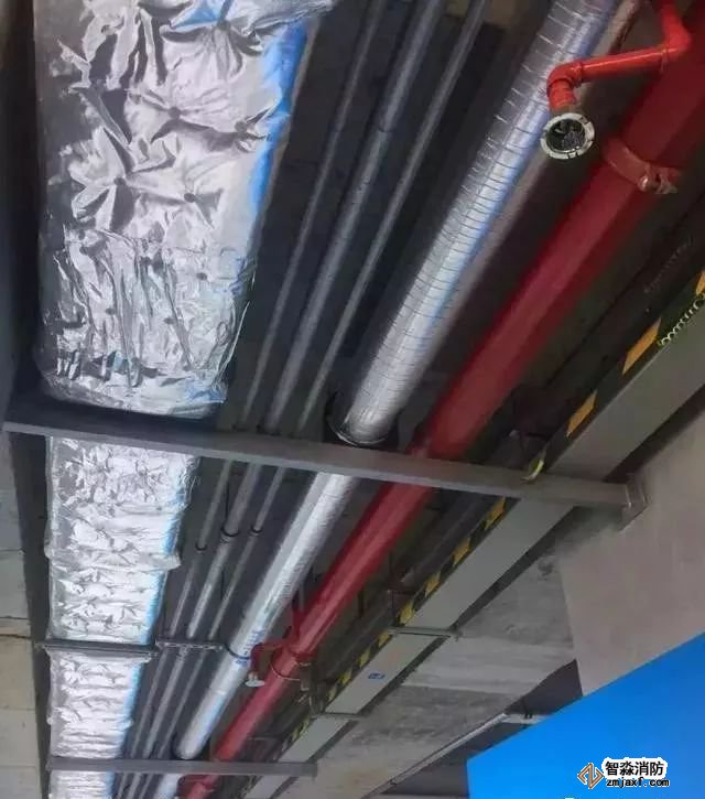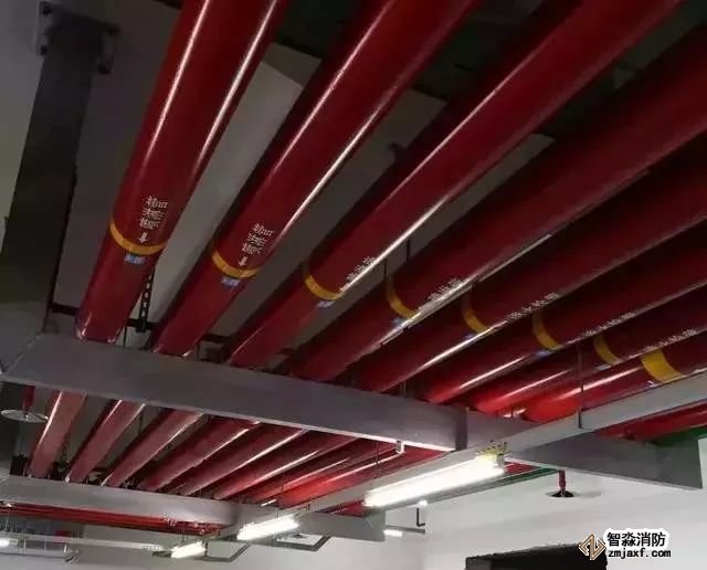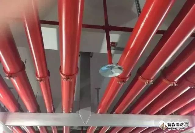 消防噴淋管道間距一致,標(biāo)識清楚、成排成線。