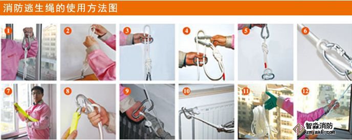 1.選取固定點(diǎn)。將逃生繩帶或逃生軟梯一端固定在牢固的物體上,例如結(jié)實(shí)的窗戶,桌腿,暖氣管上,然后用力拉下看是否能夠承受自身的重量