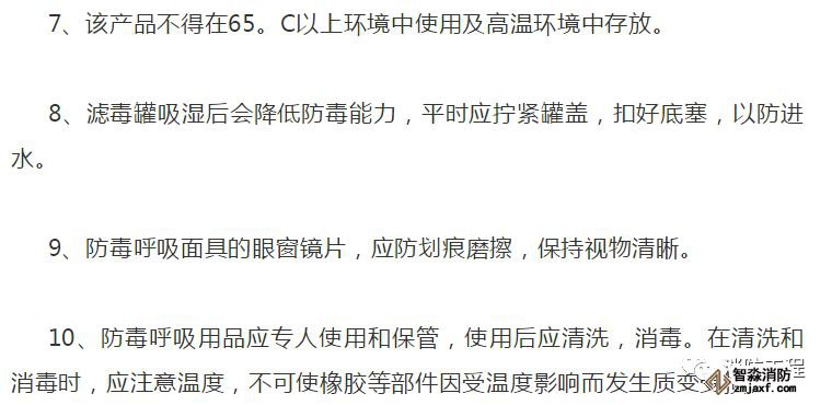 6、應(yīng)嚴(yán)格遵守濾毒罐的有效時(shí)間。在使用過(guò)程必須記錄濾毒罐使用過(guò)的時(shí)間、毒物性質(zhì)、濃度等。若記錄卡片上累計(jì)使用時(shí)間達(dá)到濾毒罐規(guī)定的時(shí)間,應(yīng)立即停止使用。在使用過(guò)程中嚴(yán)禁隨意擰開(kāi)濾毒罐(盒)的蓋子,并防止水或其它液體進(jìn)入罐(盒)中。
