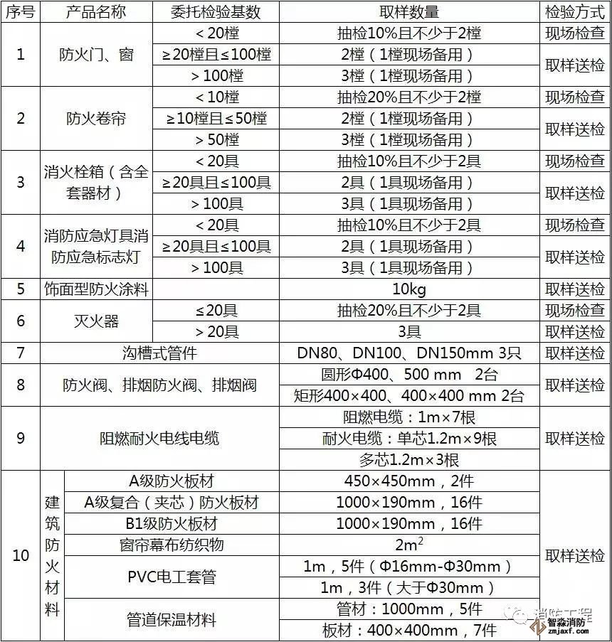 工程建設(shè)領(lǐng)域選用消防產(chǎn)品委托檢驗(yàn)基數(shù)及取樣數(shù)量列表