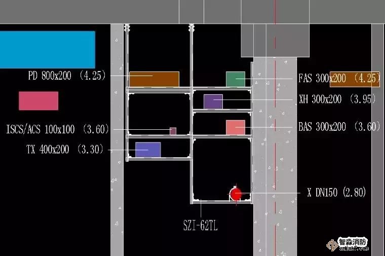 綜合支吊架的定位依據(jù)是廠家深化圖中的平面圖,優(yōu)先定位水平位置,再根據(jù)標(biāo)高定位垂直方向。
