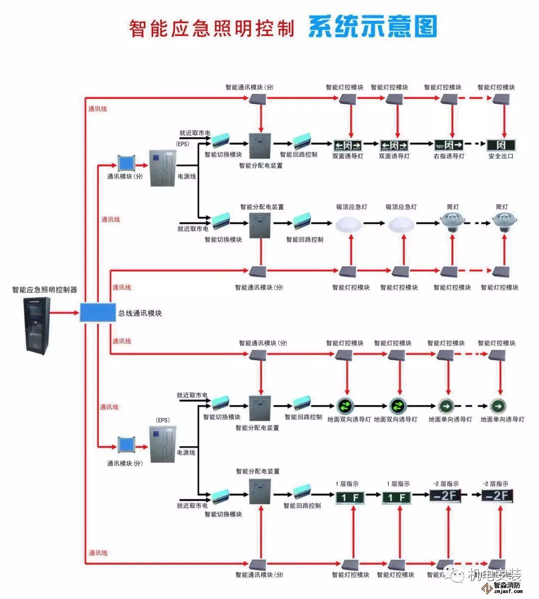 1. 集中控制型系統(tǒng),是指系統(tǒng)設(shè)置應(yīng)急照明控制器,由應(yīng)急照明控制器集中控制并顯示應(yīng)急照明集中電源或應(yīng)急照明配電箱及其配接的消防應(yīng)急燈具工作狀態(tài)的消防應(yīng)急照明和疏散指示系統(tǒng)。