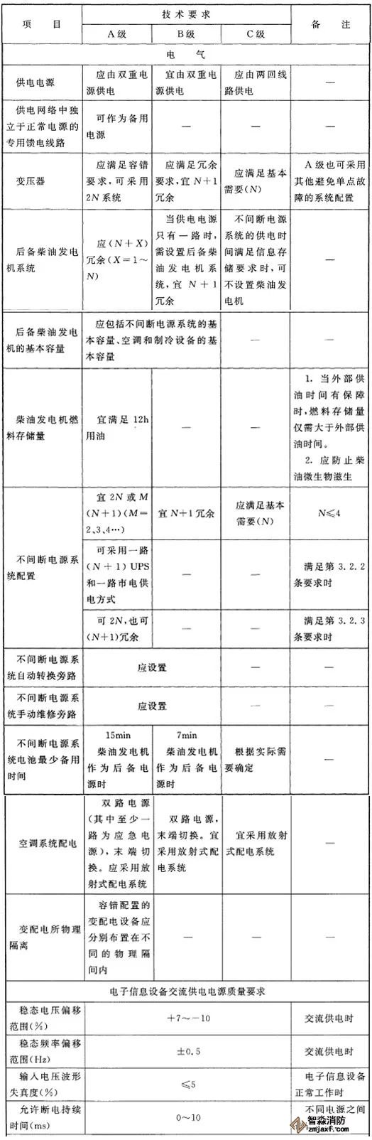 2、電子信息設(shè)備供電電源質(zhì)量應(yīng)根據(jù)數(shù)據(jù)中心的等級(jí),按下表技術(shù)要求執(zhí)行。當(dāng)電子信息設(shè)備采用直流電源供電時(shí),供電電壓應(yīng)符合電子信息設(shè)備的要求。