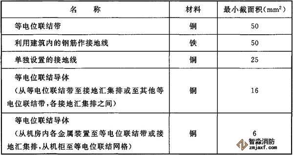 8、等電位聯(lián)結(jié)帶、接地線(xiàn)和等電位聯(lián)結(jié)導(dǎo)體的材料和最小截面積應(yīng)符合下表的規(guī)定。
