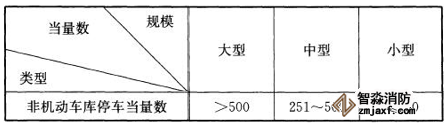 注1:對于非機(jī)動(dòng)車庫來講,主要考慮以自行車作為主要停駛車輛,因此以自行車為標(biāo)準(zhǔn)當(dāng)量作為劃分依據(jù),其他類型非機(jī)動(dòng)車輛如三輪車、電動(dòng)自行車、機(jī)動(dòng)輪椅車等停放在庫中時(shí)應(yīng)按相應(yīng)當(dāng)量換算系數(shù)進(jìn)行折算。