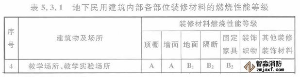 六、培訓(xùn)班設(shè)置在地下民用建筑時,內(nèi)部各部位裝修材料的燃燒性能等級,不應(yīng)低于《建筑內(nèi)部裝修設(shè)計防火規(guī)范》5.3.1的規(guī)定,參照“教學(xué)場所”執(zhí)行。