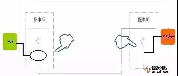 見下圖,左為電氣火災監(jiān)控系統(tǒng)檢測位置,右為消防電源監(jiān)控系統(tǒng)檢測位置
