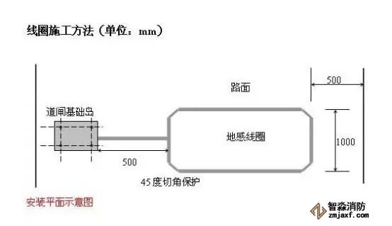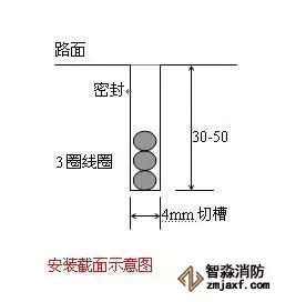 線圈埋設(shè)首先要用切路機(jī)在路面上切出槽來。在四個(gè)角上進(jìn)行45度倒角,防止尖角破壞線圈電纜。切槽寬度一般為4到8毫米,深度30到50毫米。同時(shí)還要為線圈引線切一條通到路邊的槽。但要注意:切槽內(nèi)必須清潔無水或其它液體滲入。繞線圈時(shí)必須將線圈拉直,但不要繃得太緊并緊貼槽底。將線圈繞好后,將雙絞好的輸出引線通過引出線槽引出。