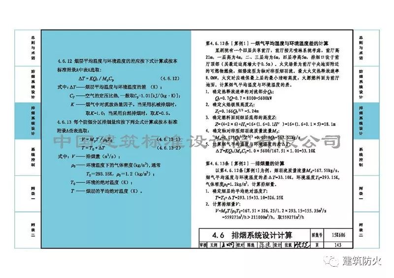 8、第143頁“第4.6.12條[算例1]”:一是字體小了;二是結(jié)合《自動噴水滅火系統(tǒng)設(shè)計規(guī)范》GB50084-2017,將前廳排煙計算從“有噴淋”改為“無噴淋”。