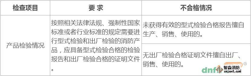 消防產(chǎn)品質(zhì)量應(yīng)當(dāng)按照相關(guān)法律法規(guī)、強(qiáng)制性國家標(biāo)準(zhǔn)或者行業(yè)標(biāo)準(zhǔn)的規(guī)定,經(jīng)型式檢驗和出廠檢驗合格。產(chǎn)品檢驗情況檢查項目、要求及不合格情況見下表。