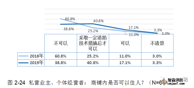 雖然群眾對(duì)這一常識(shí)有一定的認(rèn)知,但其知曉率(79.6%)比2018年(86.0%)下降了6.4個(gè)百分點(diǎn)!說(shuō)明私營(yíng)業(yè)主、個(gè)體經(jīng)營(yíng)者的消防安全意識(shí)有所松懈!