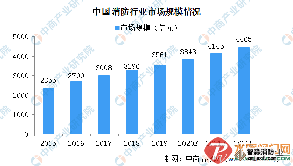 消防安全意識逐步提高,消防逐漸成為主動需求。城鎮(zhèn)化水平和交通運輸?shù)扰涮淄顿Y不斷提高,持續(xù)帶動消防需求隨著我國城鎮(zhèn)化水平的不斷提升,消防行業(yè)的發(fā)展也迎來重要契機。近幾年,消防行業(yè)規(guī)模迅速擴大。2015年消防行業(yè)市場規(guī)模2355億元,2019年市場規(guī)模突破3500億元,預計2022年市場規(guī)模將達到4465億元。