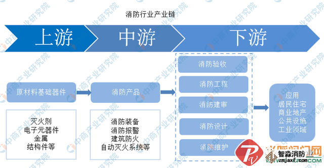 消防既包括“消”,又包括“防”。消防產(chǎn)業(yè)鏈條長,主要分為消防設計、消防建審、消防產(chǎn)品、消防工程、消防驗收、消防維保等環(huán)節(jié)。消防產(chǎn)品是整個產(chǎn)業(yè)的核心環(huán)節(jié)。消防產(chǎn)品主要包括:消防裝備、消防報警、建筑防火、自動滅火系統(tǒng)等。
