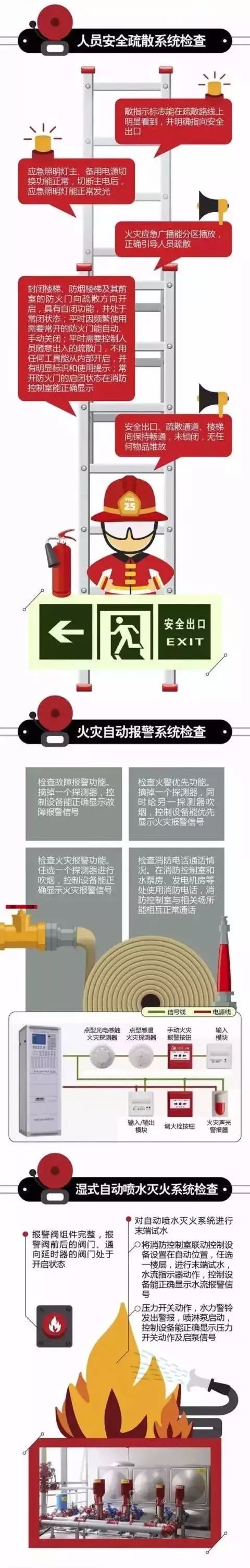 對人員密集場所還應(yīng)當(dāng)抽查室內(nèi)裝修材料是否符合消防技術(shù)標(biāo)準(zhǔn)、外墻門窗上是否設(shè)置影響逃生和滅火救援的障礙物。