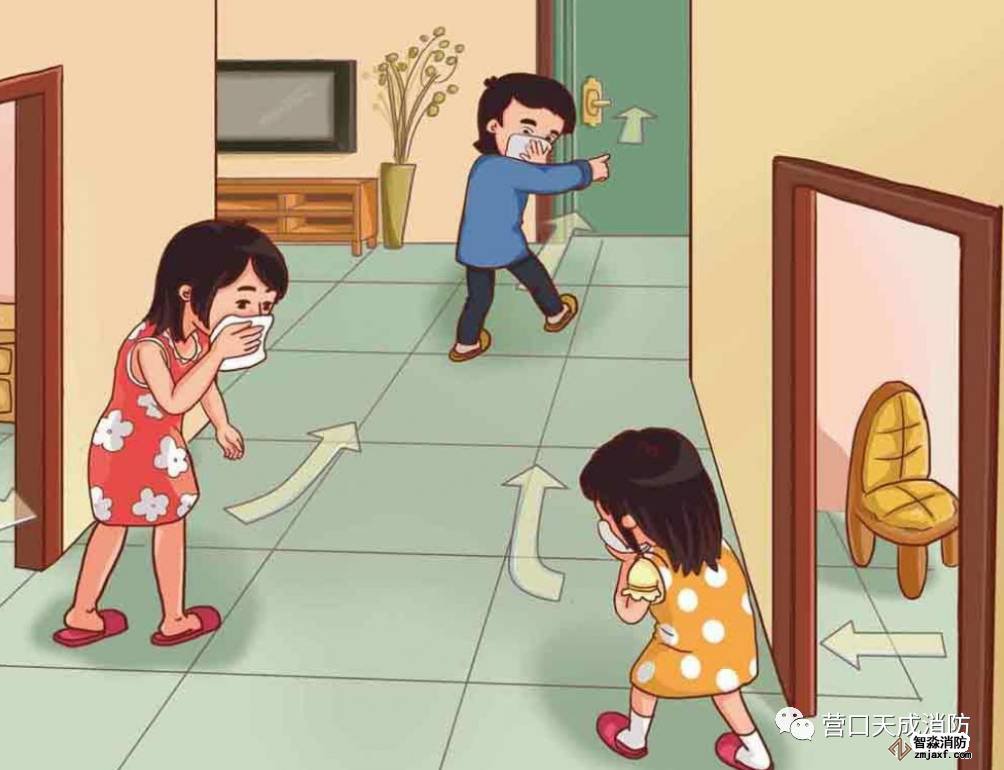 4、穿過(guò)濃煙逃生時(shí),要盡量使身體貼近地面,并用濕毛巾捂住口鼻。